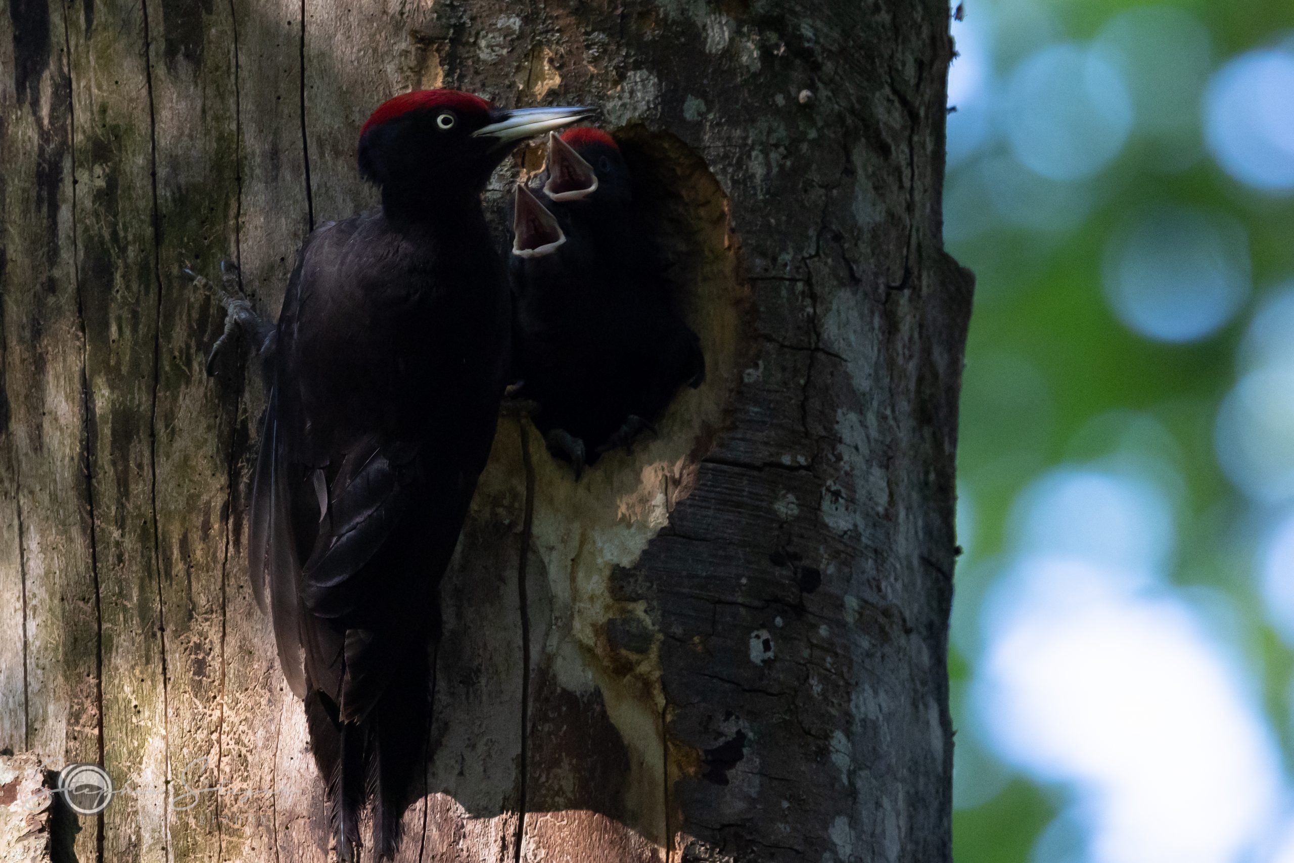 Sperber attackiert Schwarzspecht